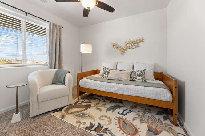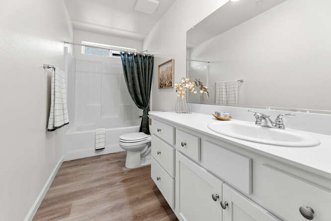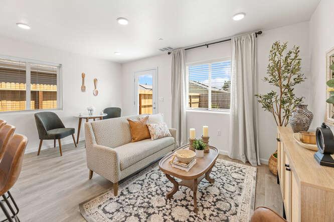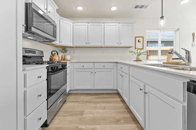 Welcome to the Acacia! One of Cross Creek Bend’s exciting new floorplans! The Acacia is a beautiful 2 bedroom, 2 bath home with 920 square feet of space to call HOME. The Acacia has a wonderful open-concept floorplan with carefully selected interior finishes that are sure to please. Wonderful kitchen with an expansive 10’ quartz countertop with plenty of seating, corner walk-in pantry and stainless-steel appliances. The owner’s suite features a single vanity, a shower/tub combo and a walk-in closet. Water conservation minded landscapes with artificial turf, smart home technology such as google nest thermostat, solar and so much more!