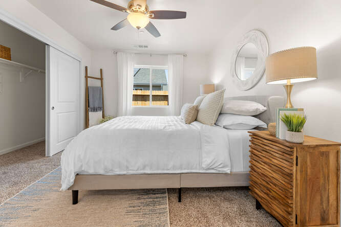 Meet the Poplar! One of Cross Creek Bend’s exciting new floorplans! The Poplar is a lovely 3 bedroom, 2 bath home with 1,150 square feet of space to enjoy. The Poplar has a wonderful open-concept floorplan with interior finishes that are sure to please. Stunning signature kitchen with an expansive center island, quartz countertops, corner walk-in pantry and stainless-steel appliances. The owner’s suite features a single vanity, a shower/tub combo and a walk-in closet. Water conservation minded landscapes with artificial turf, smart home technology such as google nest thermostat, solar and so much more!
