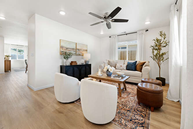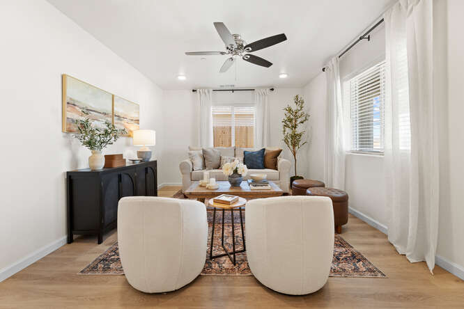 Meet the Willow! One of T.C. James Homes newest floorplans! The Willow is a gorgeous 3 bedroom, 2 bath home with 1,386 square feet of space to call your own. The Willow has a wonderful floorplan with a hard-to-find separate living and dining space with interior finishes carefully selected and sure to please. Stunning signature kitchen with an expansive center island, quartz countertops, corner walk-in pantry and stainless-steel appliances. The owner’s suite features a single vanity, a shower/tub combo and a walk-in closet. Water conservation minded landscapes with artificial turf, smart home technology such as google nest thermostat, solar and so much more!