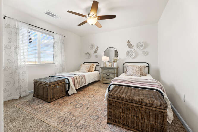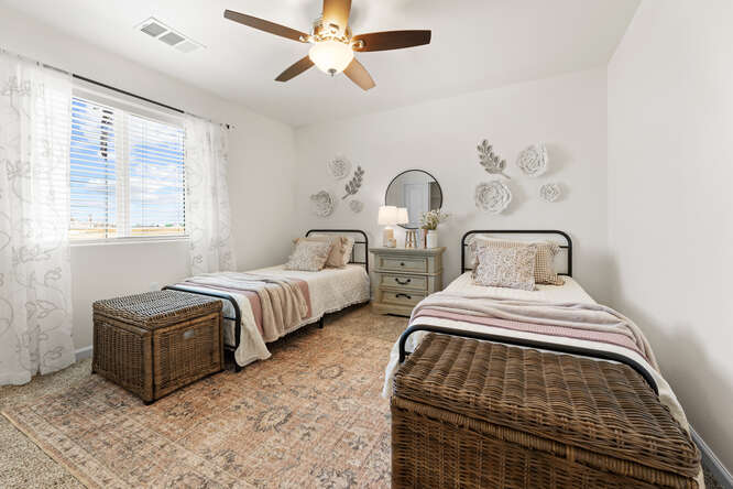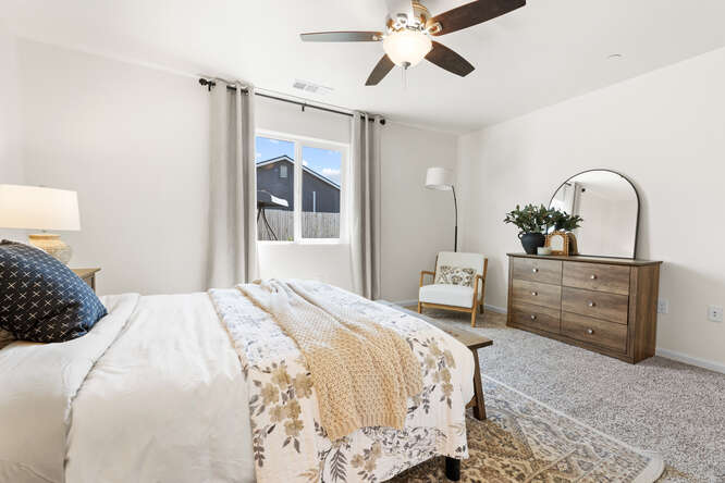 The owner’s suite features a single vanity, a shower/tub combo and a walk-in closet. Water conservation minded landscapes with artificial turf, smart home technology such as google nest thermostat, solar and so much more! Just off of highway 99, Tierra Linda offers quick access to Fresno and Bakersfield and is just a 10-minute drive.